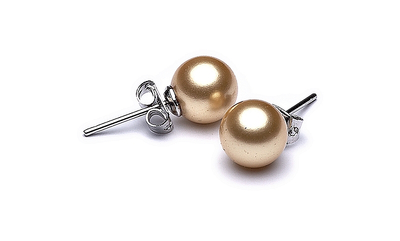 Set - necklace & bracelet & earrings, shell pearls, white, 8mm